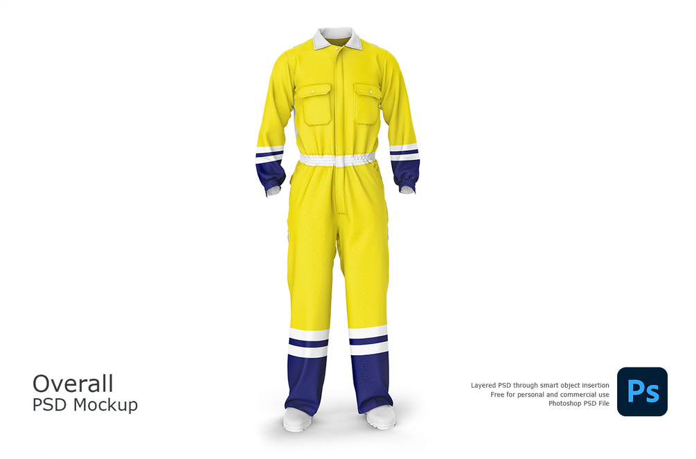 Overall or worker suit PSD mock up. Visualize your fantastic design projects with an outstanding overall mockup. Manipulate the file in Adobe photoshop.