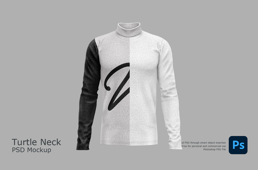 Give your design the turtle neck the mockup it deserves. This high quality, HD mockup is perfect for creating a realistic preview of your design. With an excellent level of detail, it's easy to see why this is a must-have for any designer. Create a professional and polished look for your turtle neck with our mockup today.