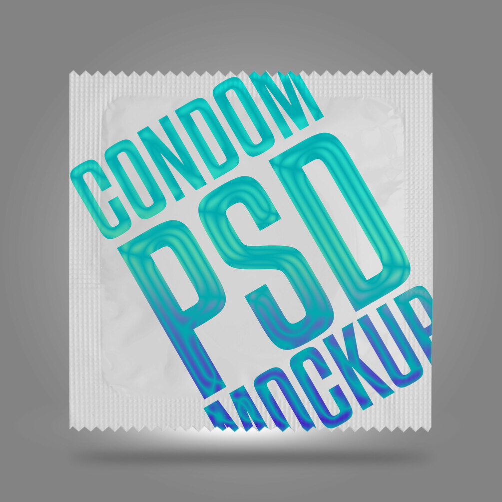A realistic condom with packing. You can download this mockup in PSD file format. Photorealistic Mockup with high quality design. change text and logo design. Includes special layers and smart objects for your work. You can change anything you want.